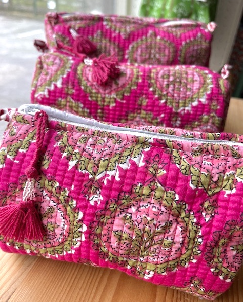 Kosmetiktasche Beautybag Handdruck Stoff Indien in 3 Größen / (Größe ) L