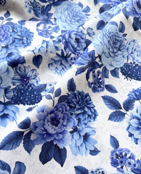 Baumwollstoff - Blumen - cremeweiss Blautöne - 50 cm