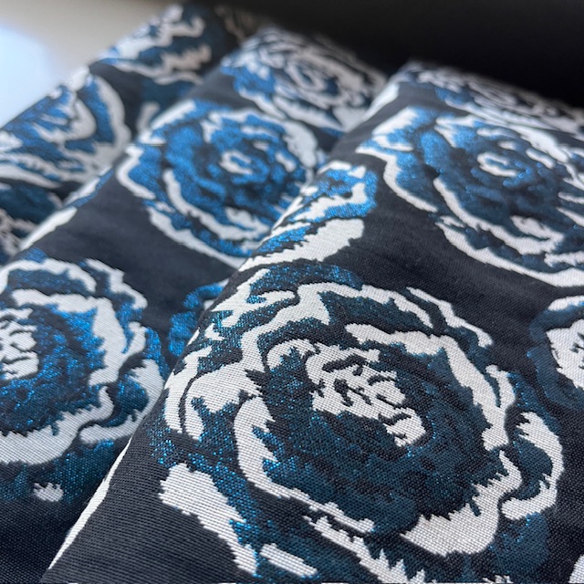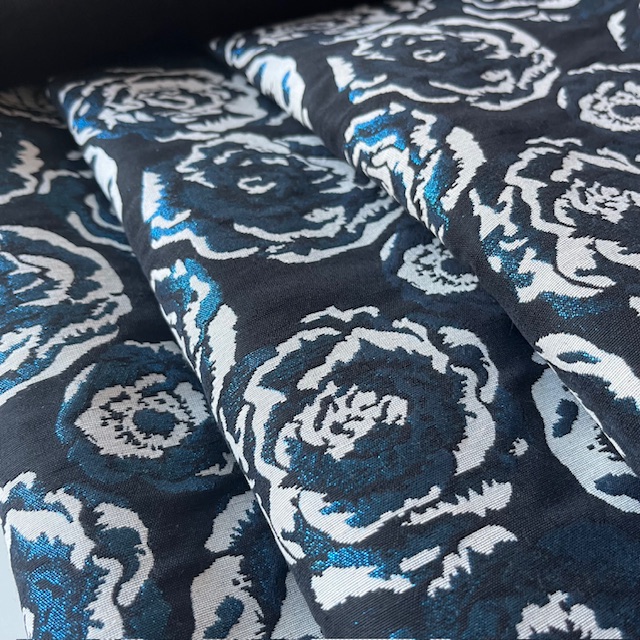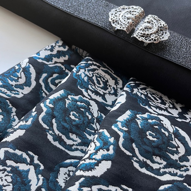 2x 100 cm Rockstoff - Jacquardstoff mit gewebten Blumen und Lurex-Fäden in schwarz blau; zarte, festliche Glitzeroptik