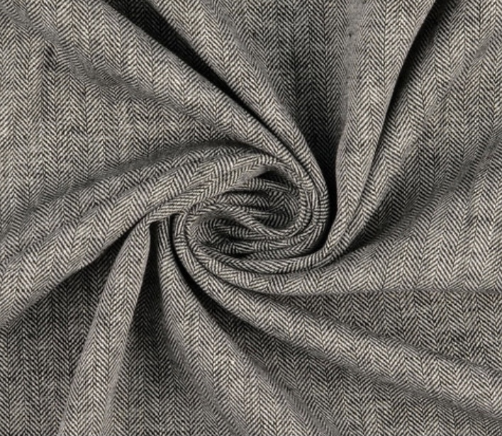 Fischgrat Halbleinen Baumwoll-Leinenstoff - Twill - schwarz - 50 cm