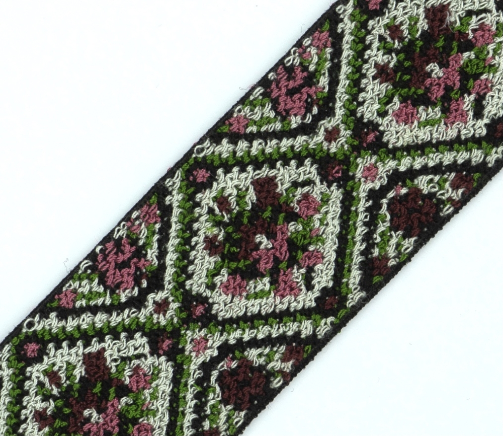 Hochwertiges Jacquard Gummiband für Trachtengürtel mit gewobenem Gobelinmuster.
