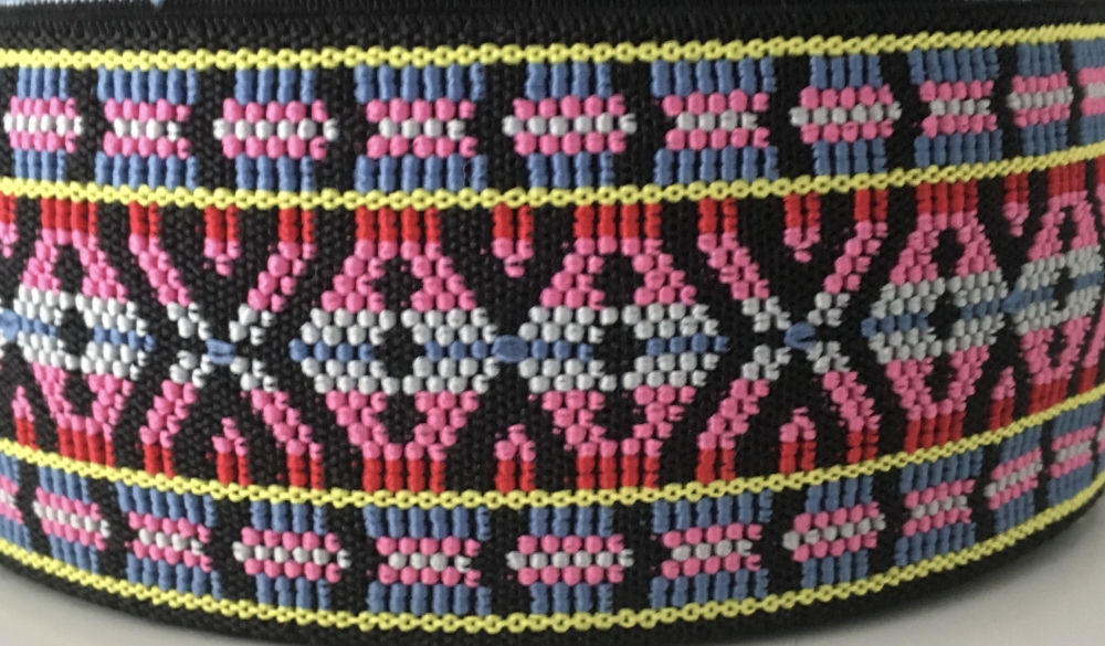 Gummiband für Trachtengürtel - 2,5 cm - schwarz gemustert Dirndlgürtel elastisch gewebt