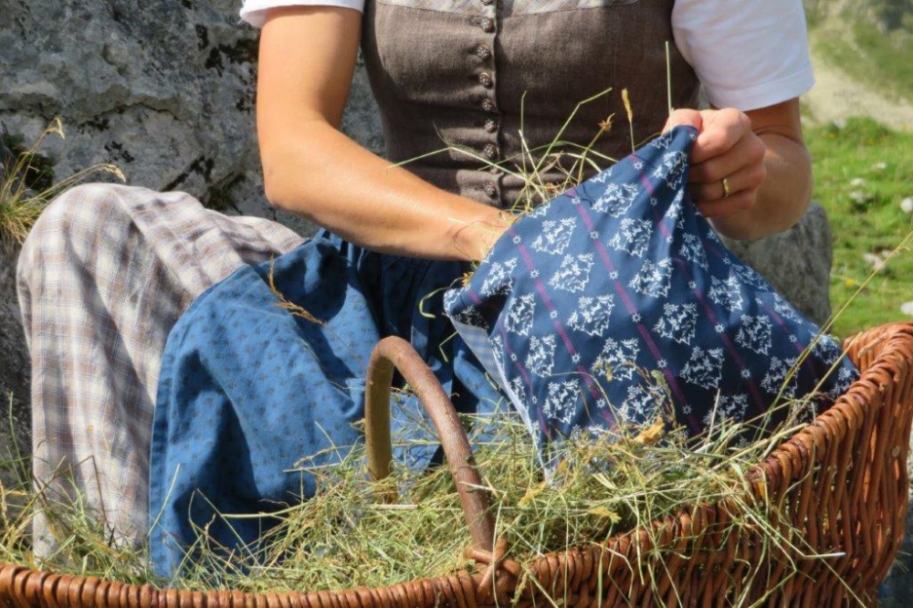 Das Bayrischzeller Heukissen wird mit Heu aus zertifizierter, biologischer Landwirtschaft gefüllt.
