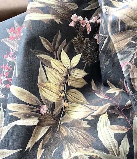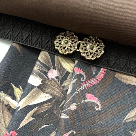 190 cm Rockstoff - dunkelbrauner Blumendruck (2 rapportgleiche Stücke mit jeweils 95cm)